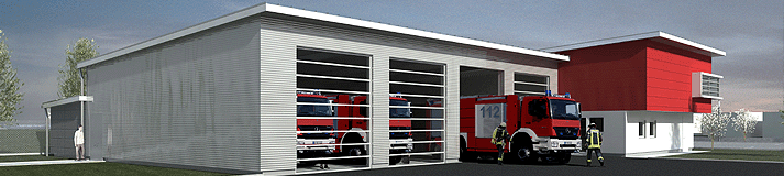 feuerwehrstützpunkt liebenburg/ othfresen : Ideenwettbewerb für den Neubau eines Feuerwehrgerätehause mit Fahrzeughalle, Umkleidebereich, Werkstätten, Verwaltung und Schulungsbereich im Auftrag der Architekten Isermann + Jensen. Zweigeschossiges Kopfgebäude mit Eingang, Verwaltung und Schulung im OG als (WDVS mit feuerwehrroten Fassadenplatten. Daran anschließend die Fahrzeughalle in Stahlbauweise mit transparenten Sektionaltoren, Fassade als Sandwichpaneele mit horizontaler Aluwelle und Pultdach. im Süden anschließend der eingeschossige Umkleidebereich mit grauen Fassadenplatten. Die Pultdächer sind mit einer integrierten PV-Anlage ausgestattet.