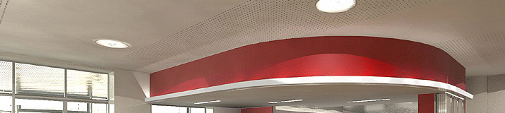 kantine DRK : Visualisierung des Innenraums der neuen Kantine des DRK auf dem ehemaligen Kasernengelände Exer in Wolfenbütte im Auftrag der ACI Ingenieurgesellschaft mbH Braunschweig. Im Rahmen der Sanierung und Umgestaltung der Küche und des Ausgabeebreiches wurde das räumliche Konzept der "Offenen Küche" umgesetzt. Über der Ausgabe ein Deckensegel mit gestaffelten Einbauleuchten, gefasst von einer im Verlauf der Schiebeelementwand verlaufenden Deckenschürze mit vorgesetzter Lichtvoute für indirektes Licht. Zum lichtdurchfluteten Gastraum raumhohe Wanddurchbrüche mit Schiebetüren.
