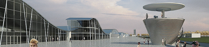 autodrom : Studie, Konzept und Masterplan für den Neubau einer modernen Auto-Stadt mit diversen Nutzungseinheiten für Präsentationen, Events, Hotel und Gastronomie, neuem Shuttel-Bahnhof und Kundencenter mit "Car-Tower" entlang einer grosszügigen, 900m langen Piazza mit angrenzendem Streckenparcour, Seilbahn und Expo-Pavillions auf einem zirka 25 ha grossen Grundstück im Auftrag für die ASSMANN beraten + planen AG.